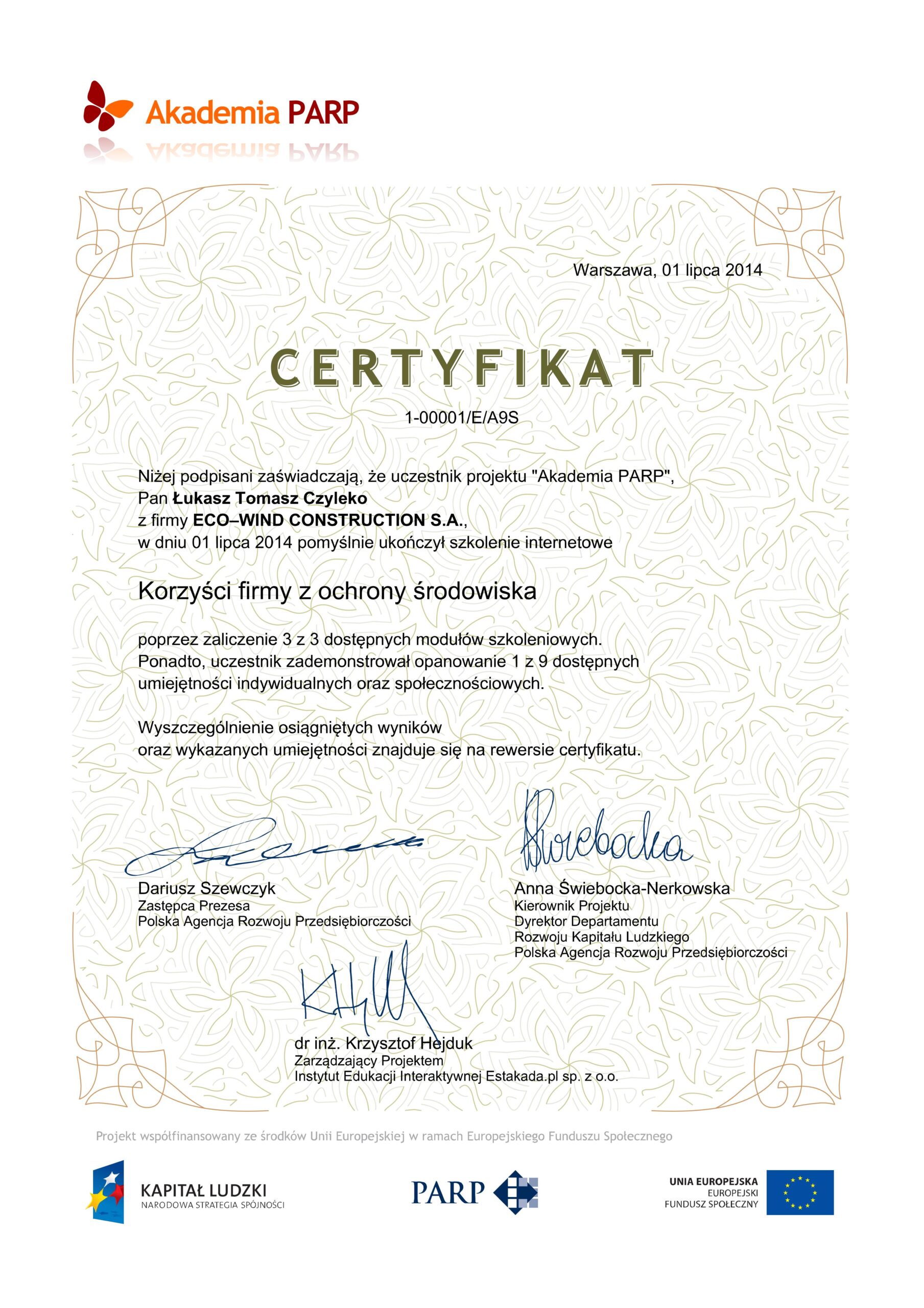 Ekspert zajmujący się procesem przygotowania i realizacji inwestycji budowlanych. W branży ochrony środowiska od 2009 r. Posiada doświadczenie w prowadzeniu postępowań administracyjnych w sprawie wydawania decyzji o środowiskowych uwarunkowaniach oraz wieloletnie doświadczenie w opracowywaniu, koordynacji przepływem dokumentacji związanej z postępowaniem środowiskowym. Realizował projekty w zakresie odnawialnych źródeł energii. W roku 2011 członek zespołu Lokalnej Współpracy ds. Planu Zadań Ochronnych przy Regionalnej Dyrekcji Ochrony Środowiska w Szczecinie. Ekspert branżowy z zakresu ochrony środowiska oraz postępowań administracyjnych portalu zajmującego się tematyką efektywności energetycznej. Posiada wieloletnie doświadczenie we współpracy z organami administracji publicznej oraz podmiotami prywatnymi, w tym koncernem energetycznym oraz przedsiębiorstwami zajmującymi rozwojem i realizacji odnawialnych źródeł energii.