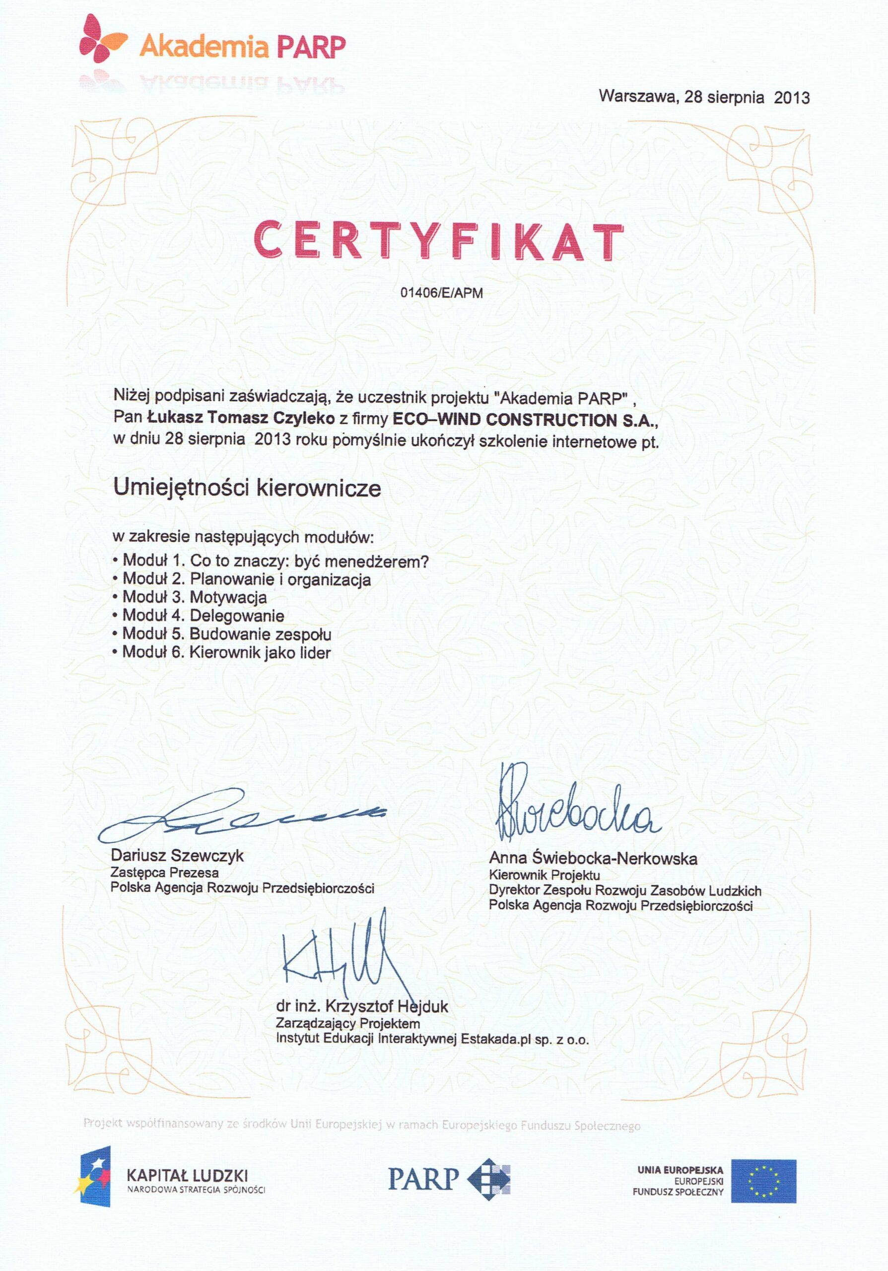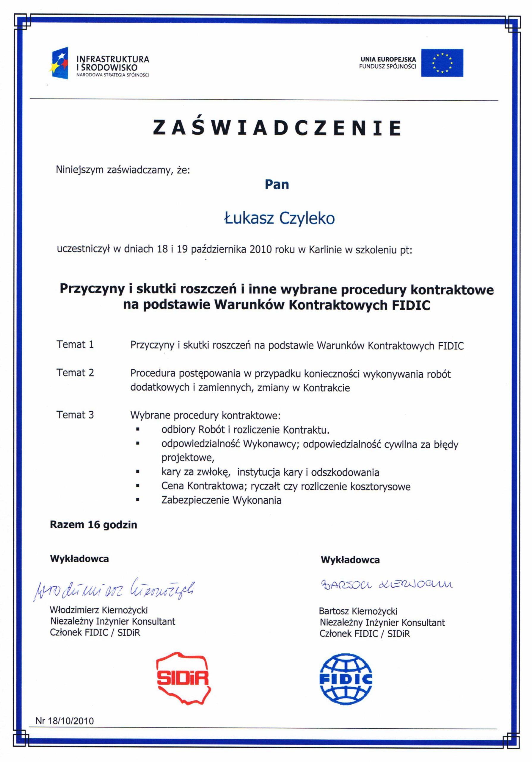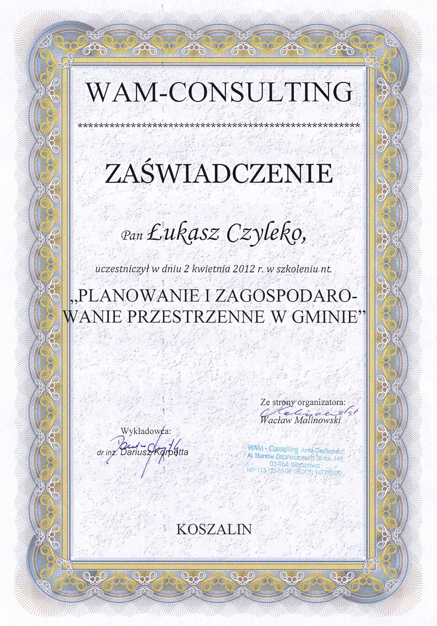 Posiada uprawniania budowlane nr ZAP/0226/WBS/19, ZAP/IS/0060/20, do kierowania robotami budowlanymi w specjalności instalacyjnej w zakresie sieci, instalacji i urządzeń cieplnych, wentylacyjnych, gazowych, wodociągowych i kanalizacyjnych bez ograniczeń.